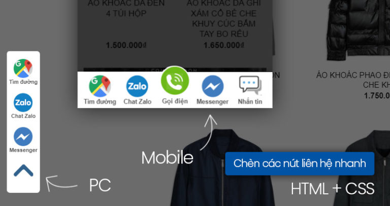 - Code chèn Hotline và chat Facebook vào chân trang trên giao diện mobile cho website
