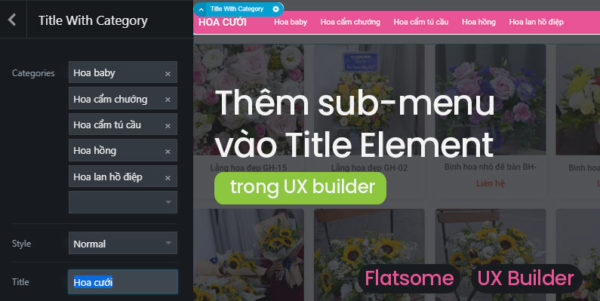 - Thêm danh mục con vào Element Title trong UX Builder của theme Flatsome